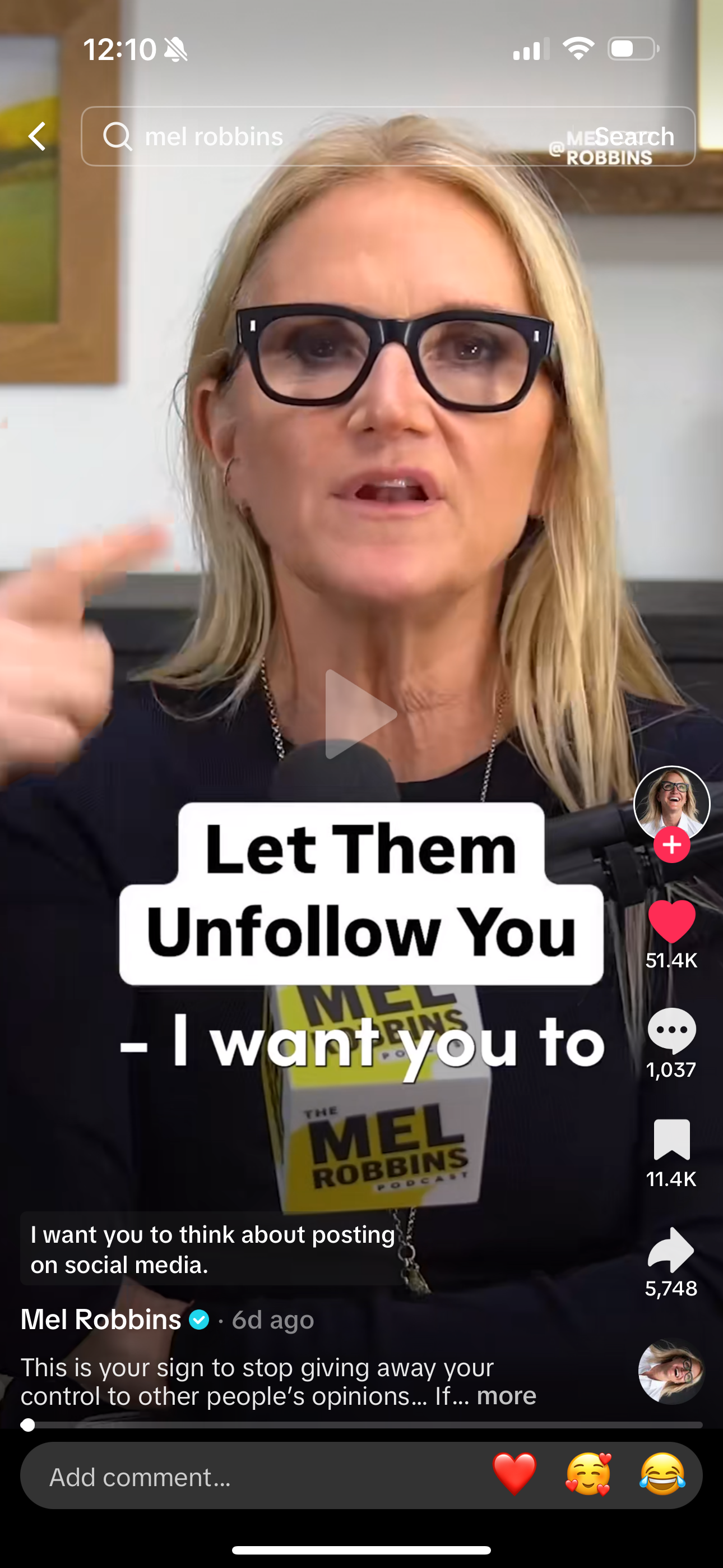 I love Mel Robbins’ “Let Them” theory. She says, Let them judge. Let them think whatever they want—they’ll do it anyway. The freedom comes when you stop caring.